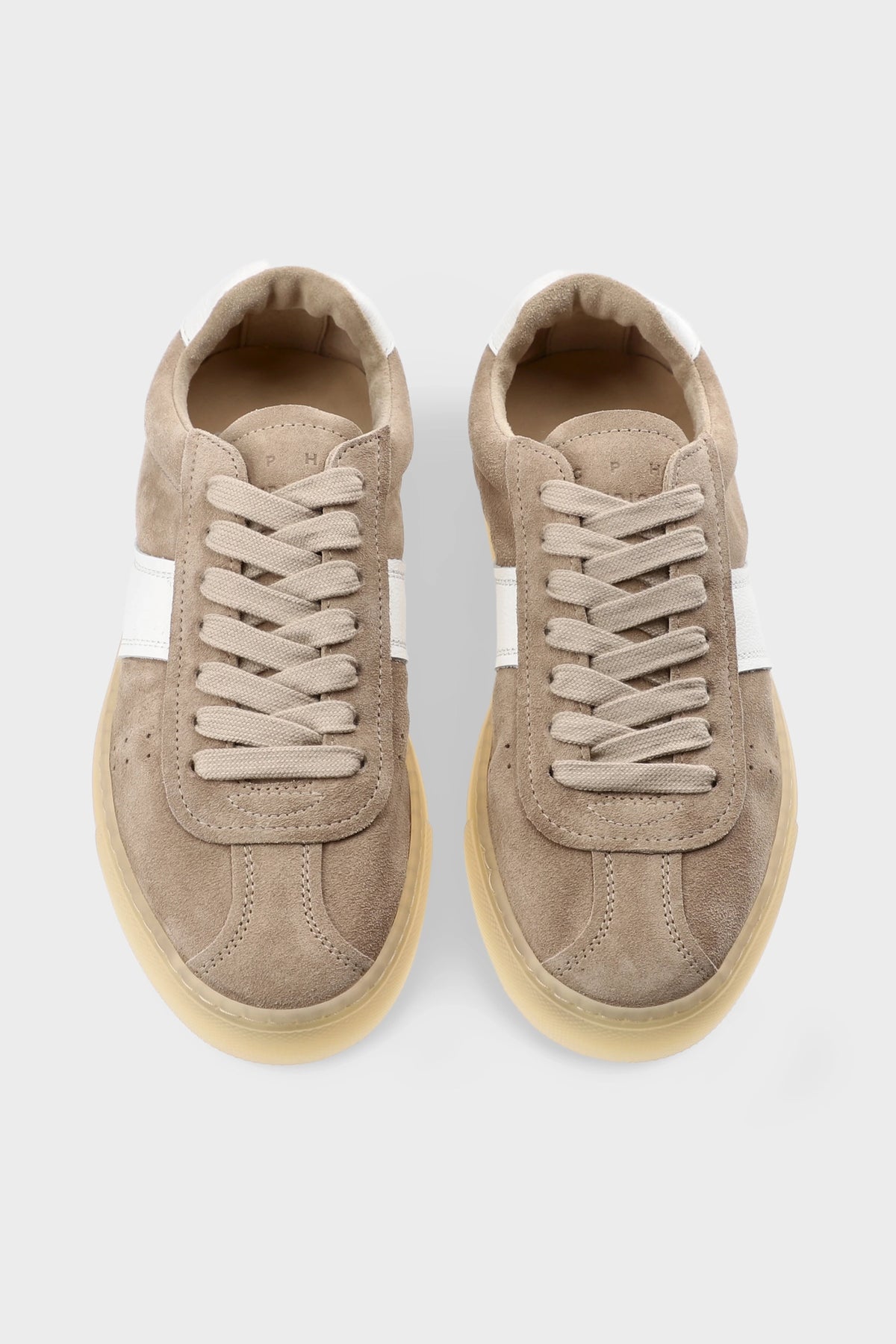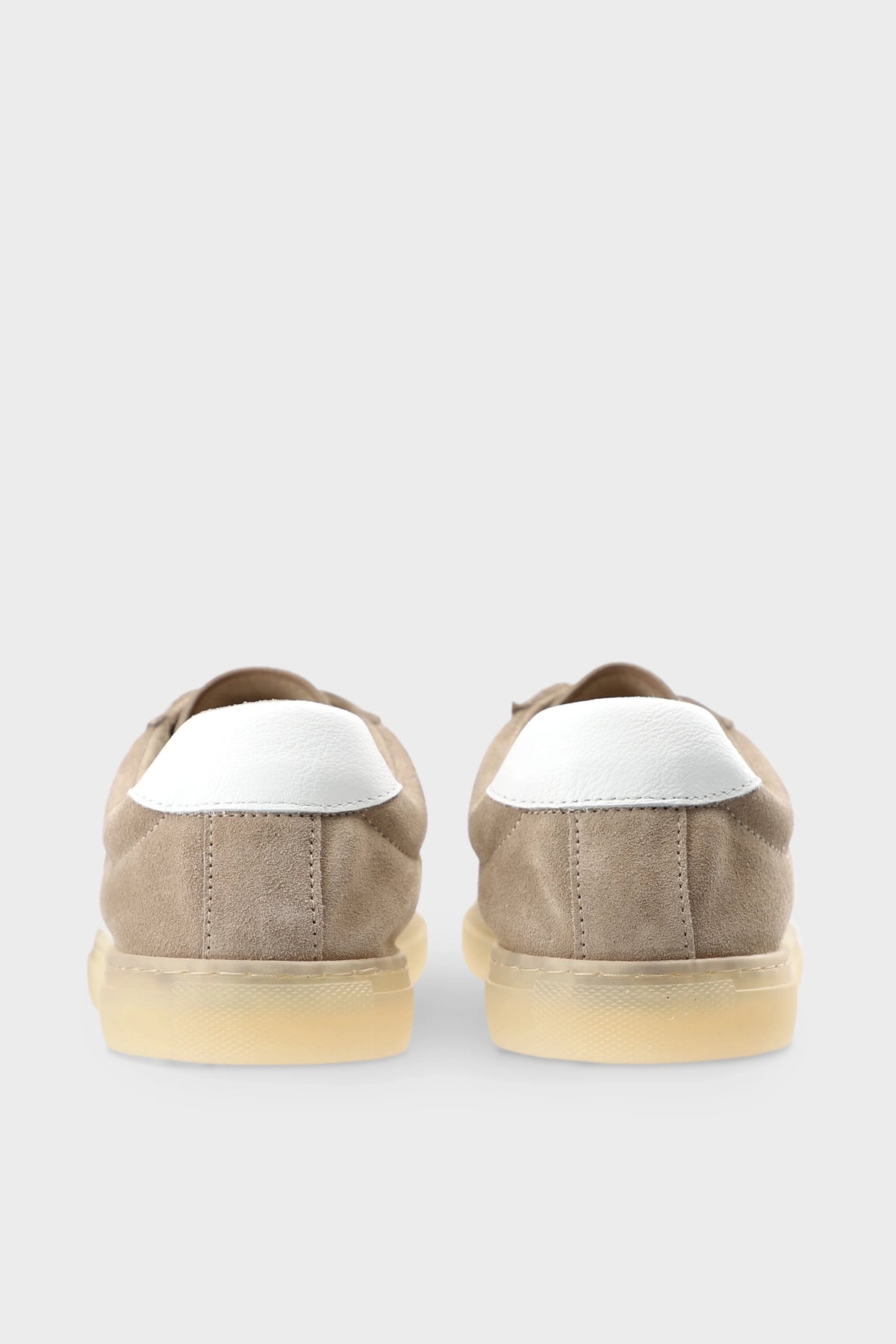 Denne sneakeren sitter perfekt på foten i nydelig mykt sandfarget skinn med hvit skinnstripe. Fantastisk komfort!