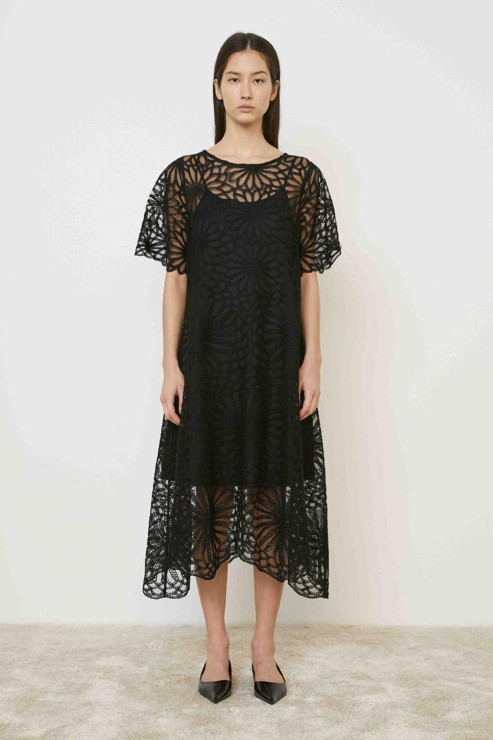 En fantastisk modell fra storfavoritten Meimeij kommer som en del av høstleveringen i år. En mesh kjole med broderier av blomster over hele kjolen. Broderiet implementerer en fantastisk varme over en ellers lett og tynn kjole, da det er broderert med en sort ulltrå. Den kommer med en underkjole med stropper. Kjolen bærer virkelig et unikt preg!