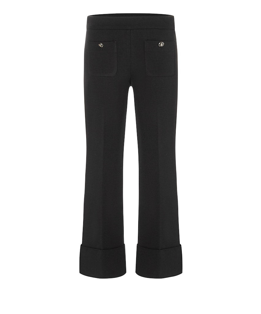 Flora er en spennende rålekker modell som virkelig gir det lille ekstra. Den kommer med strikk i livet, rette litt vide ben med oppbrett nederst som et veldig kult og edgy uttrykk. Litt kort modell. Rette lommer foran med knapper.