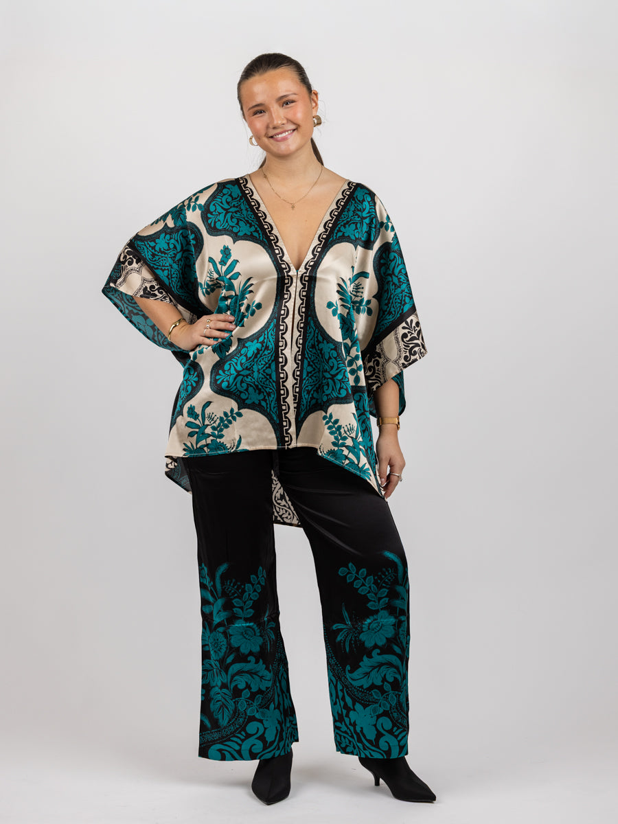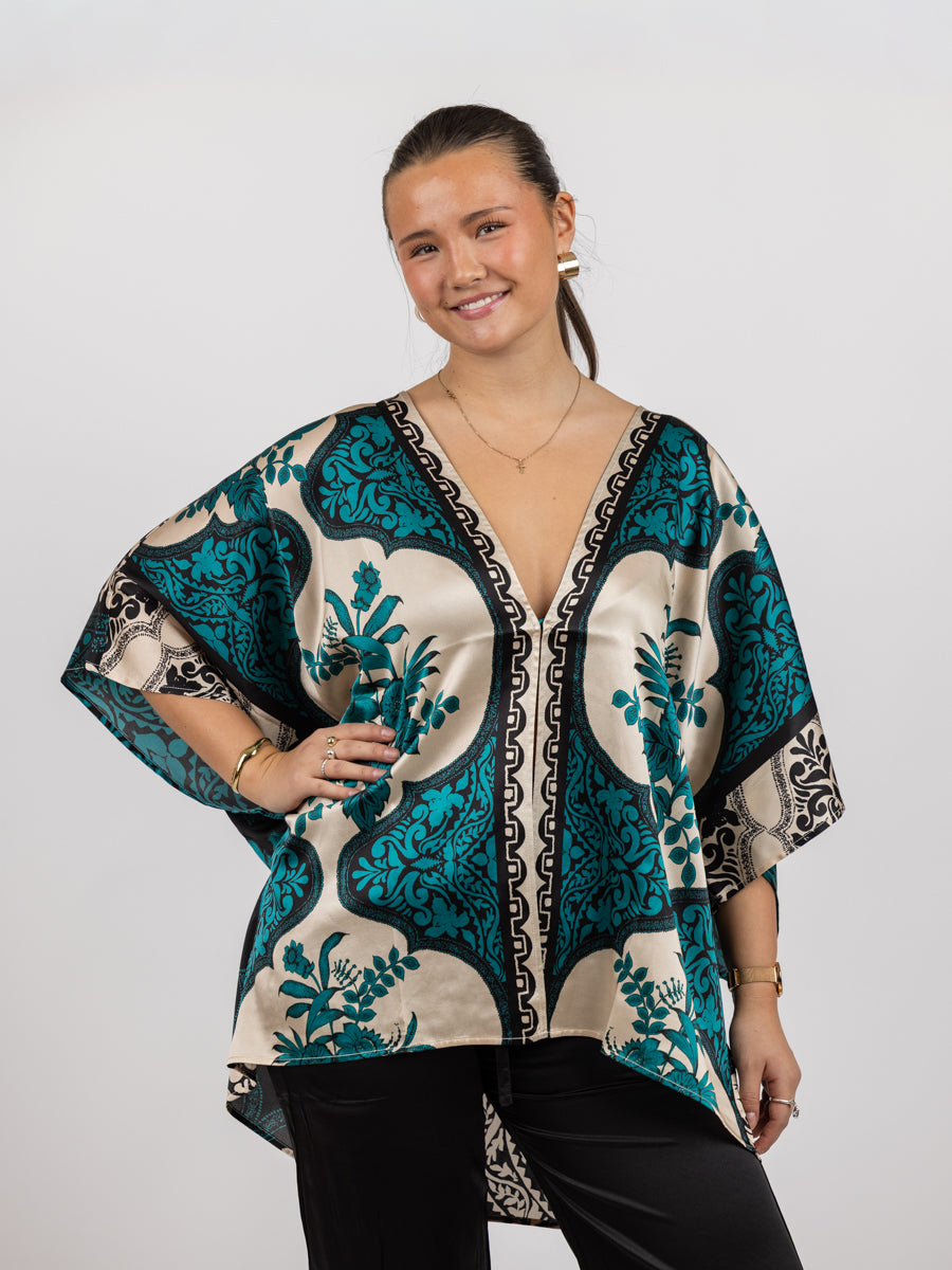 Ronan Kimono er en herlig kimono i fantastiske farger og mønstre. Knapp foran, kort arm, løst og ledig snitt.