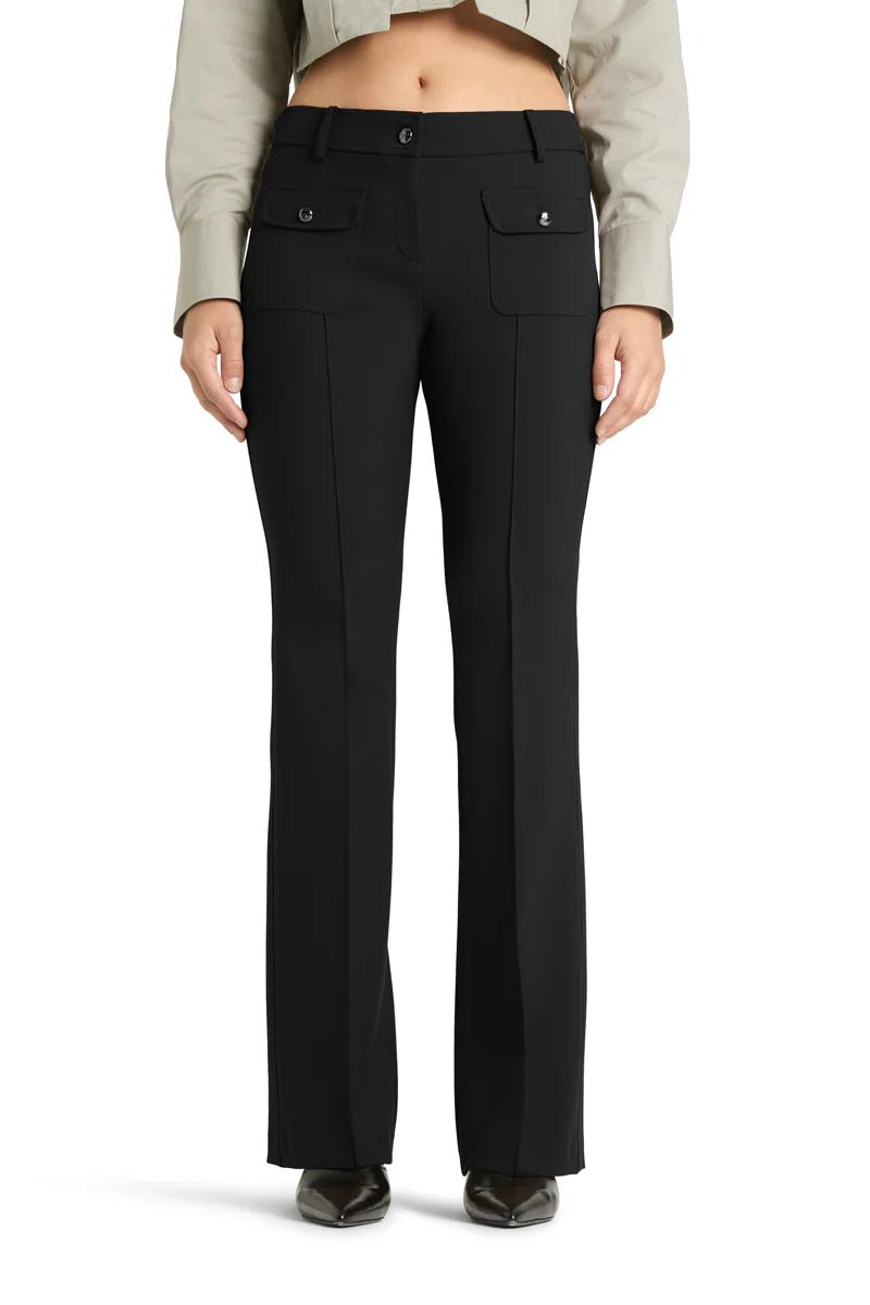 Cambio Farah pocket long sort bukse med lommer og søm foran, lange ben med liten flare nederst
