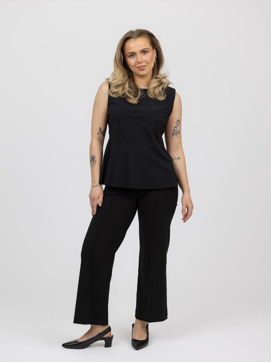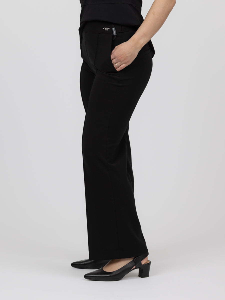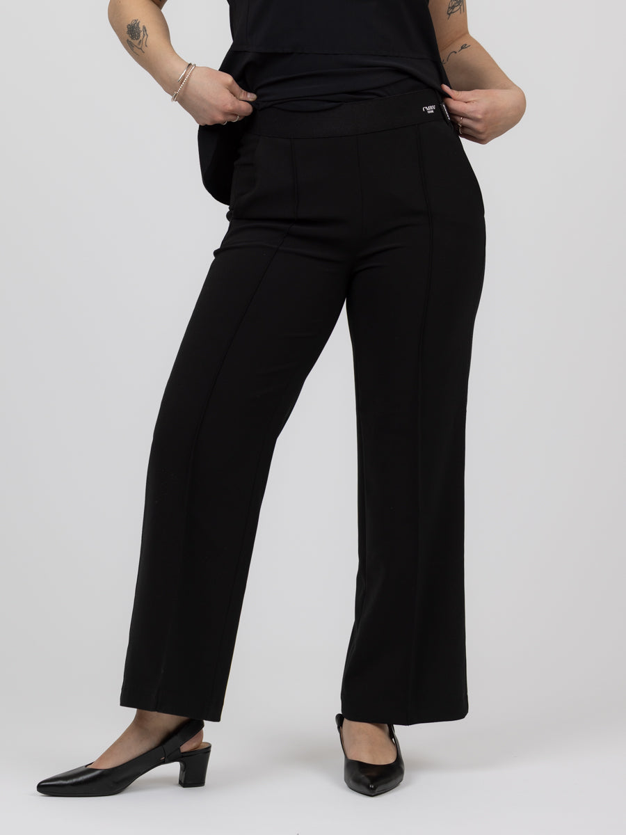Cameron har elastisk liv med strikk, lommer i siden, søm foran, ankellang lengde og rette ben. Litt kort på lengden. Nydelig lett og myk kvalitet med strech og med perfekt passform.