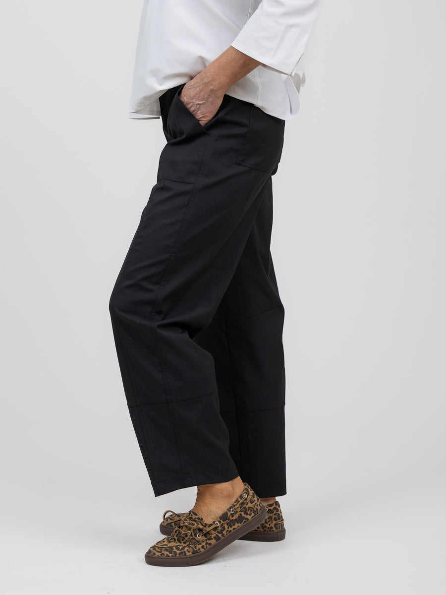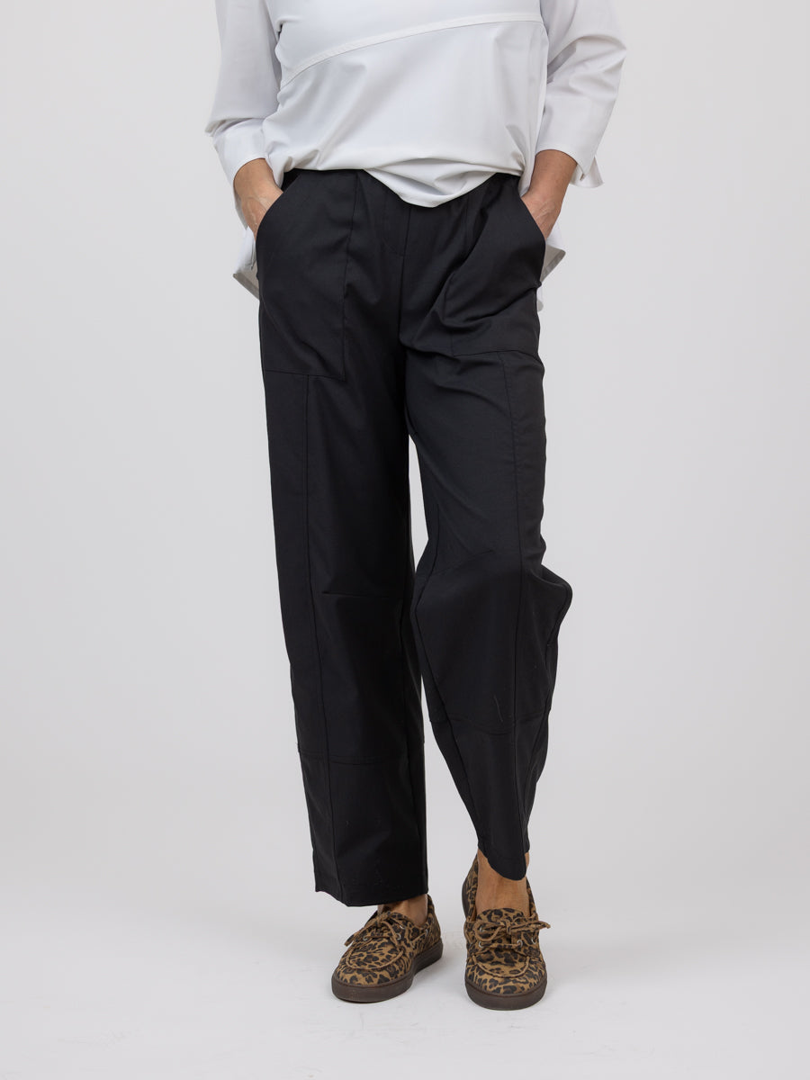 Ankellengde på bena som svinger litt inn nederst. Myk og lett kvalitet med stretch, skrålommer foran, lommer bak og med strikk i livet. Rålekker modell!