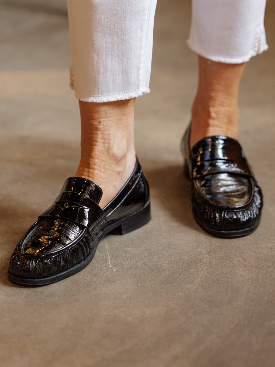 Rålekker loafers i sort skinnlakk. Klassisk og lekker loafer i utrolig myk skinnlakk, med lærsåle. Behagelige og lette på foten.