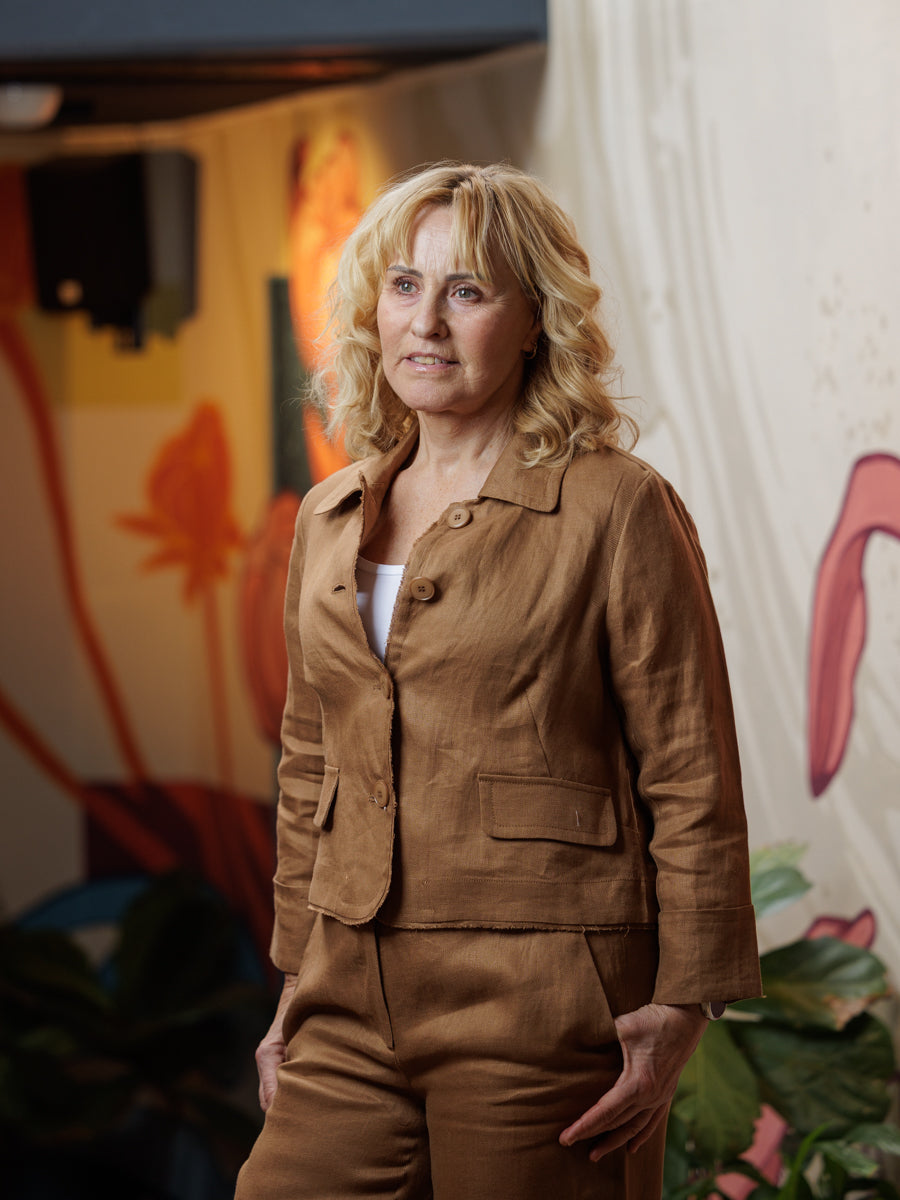 Angoor er et skjønt sommer-merke med fokus på lin og naturlige kvaliteter. Cecil er en litt kortere dressjakke med litt vidde, som gir en utrolig fin fasong. Med knapper foran og oppbrett på ermene.