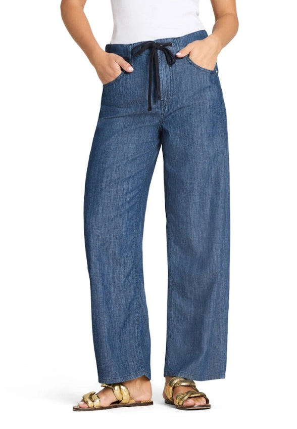 Myk jeans med rette, vide ben og god benlengde.