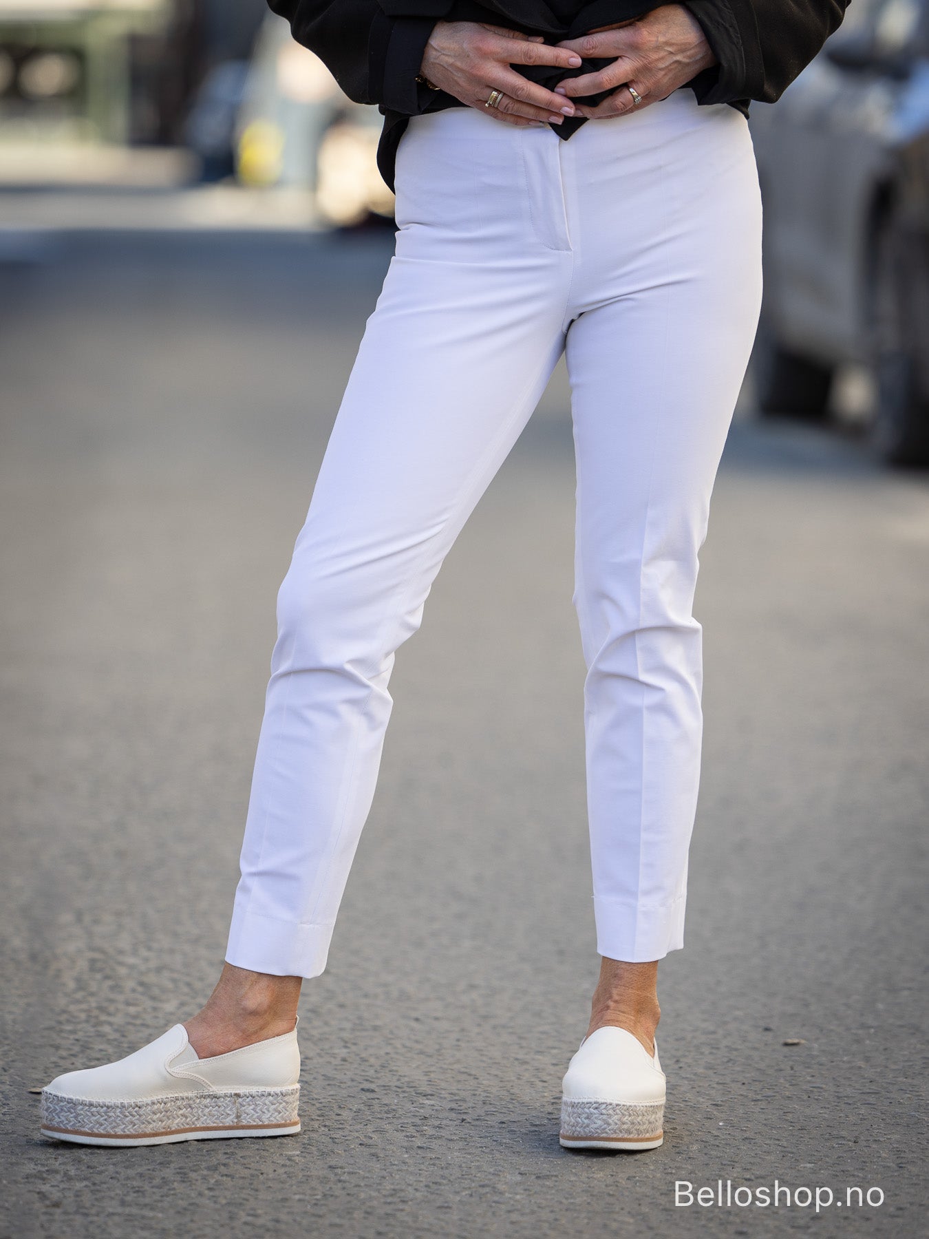 Favorittmodellen Ros Summer cropped fra buksespesialisten Cambio! Flott hvit bukse, litt kort på lengde, flatterende snitt. ROS SUMMER har en fantastisk strech og passform. Glidelås og knapp foran, lommer bak.