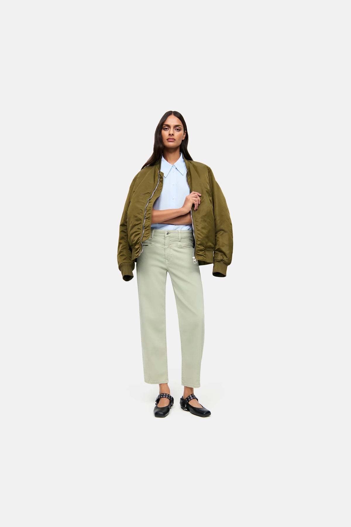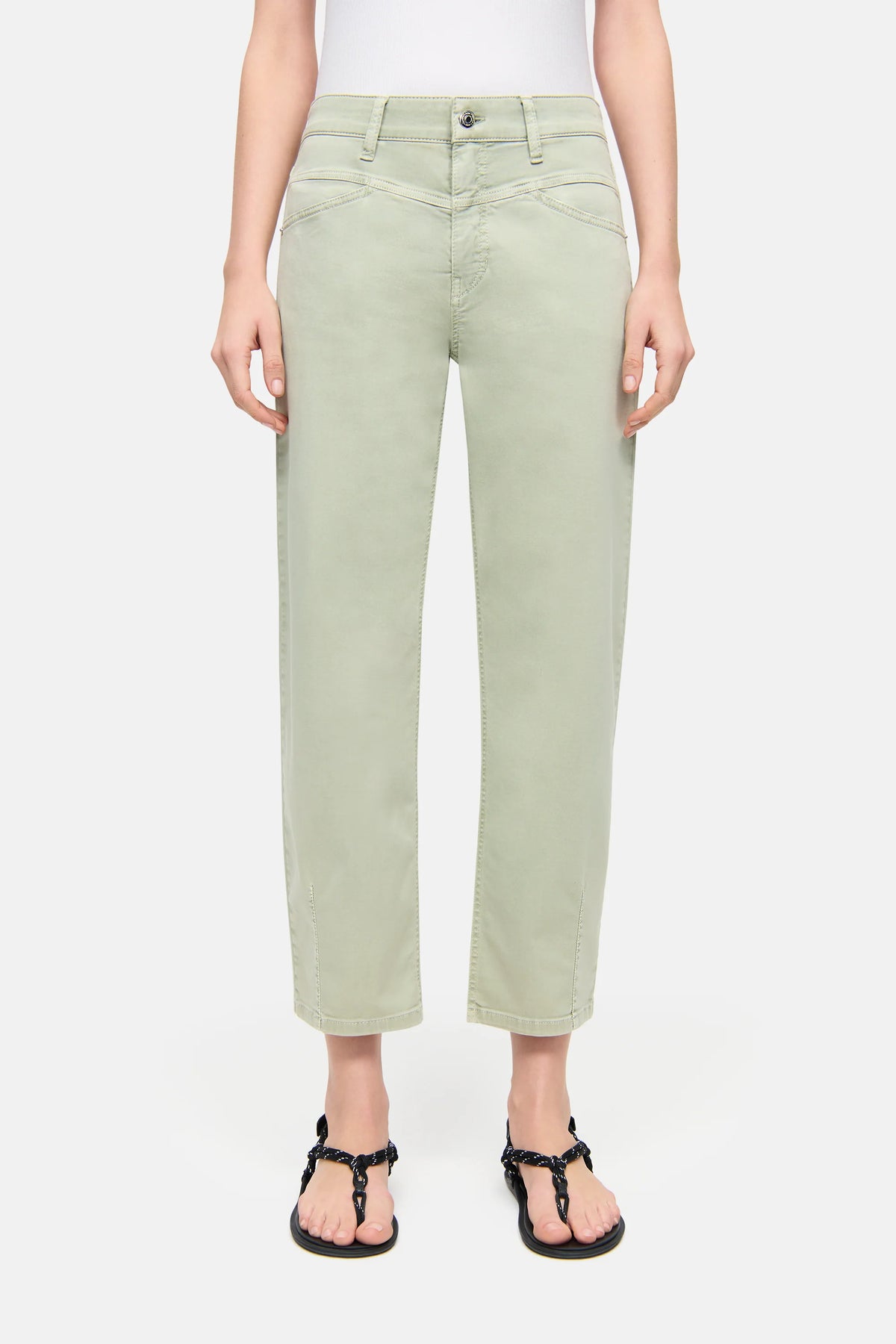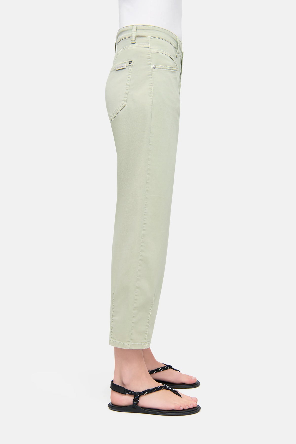 Elin er en barrel bukse som har en flatterende og flott passform, ankellang modell som svinger litt inn nederst. Myk og strechy kvalitet, lommer både foran og bak.