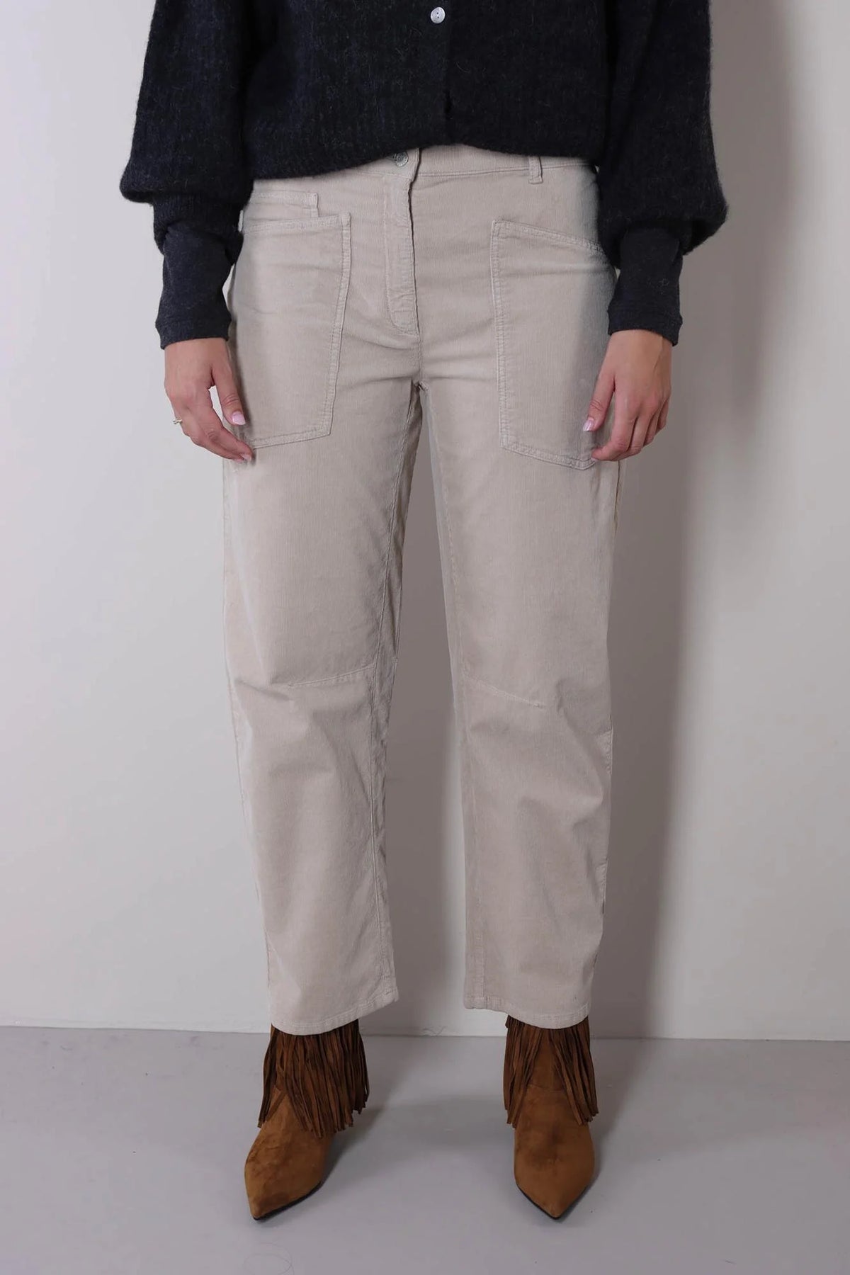 Ocean er en barrel bukse som nå er i en myk jeanskvalitet i en rålekker varm beigefarge.