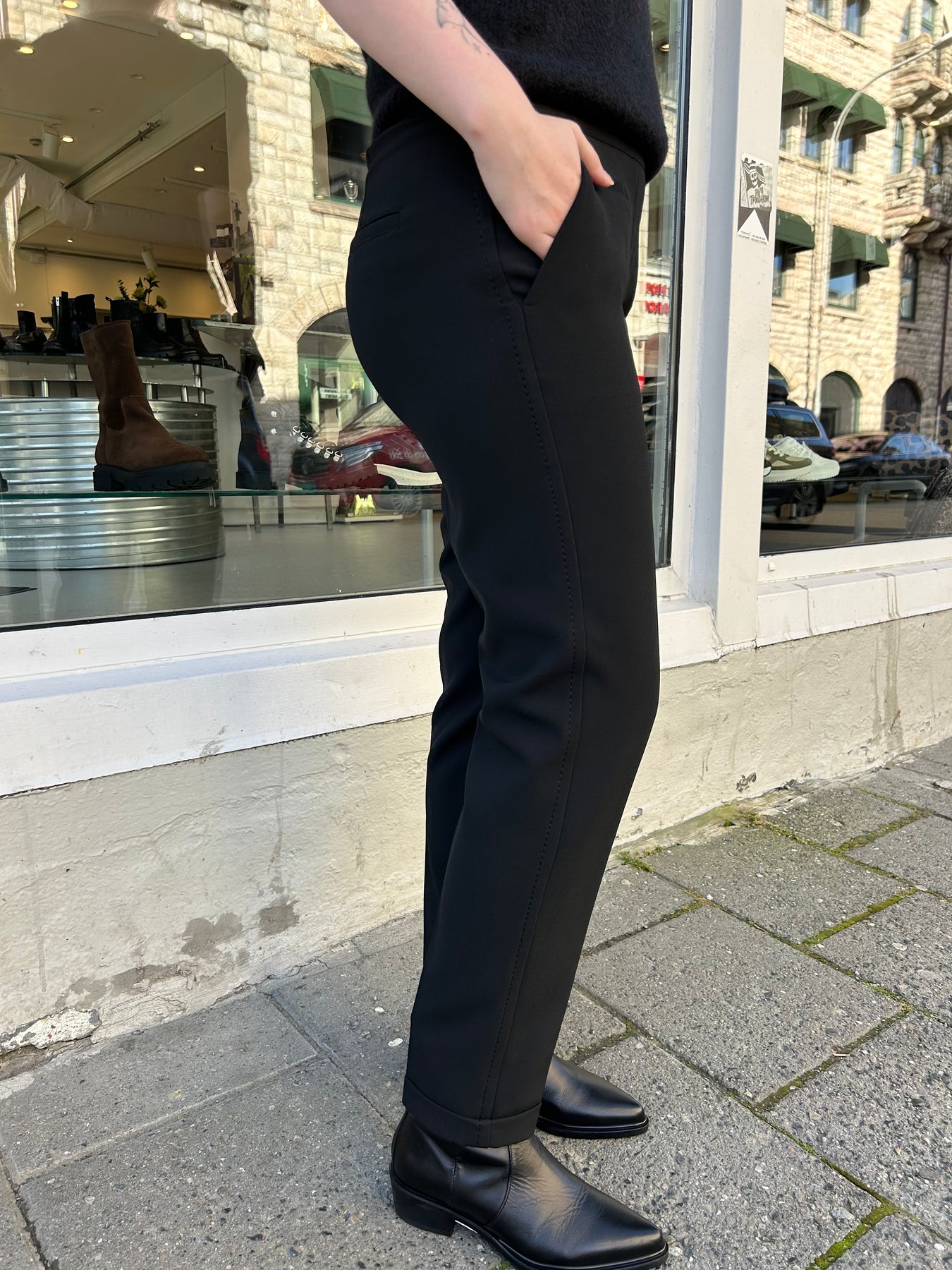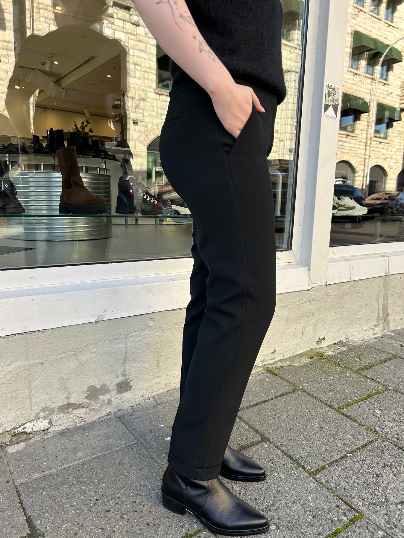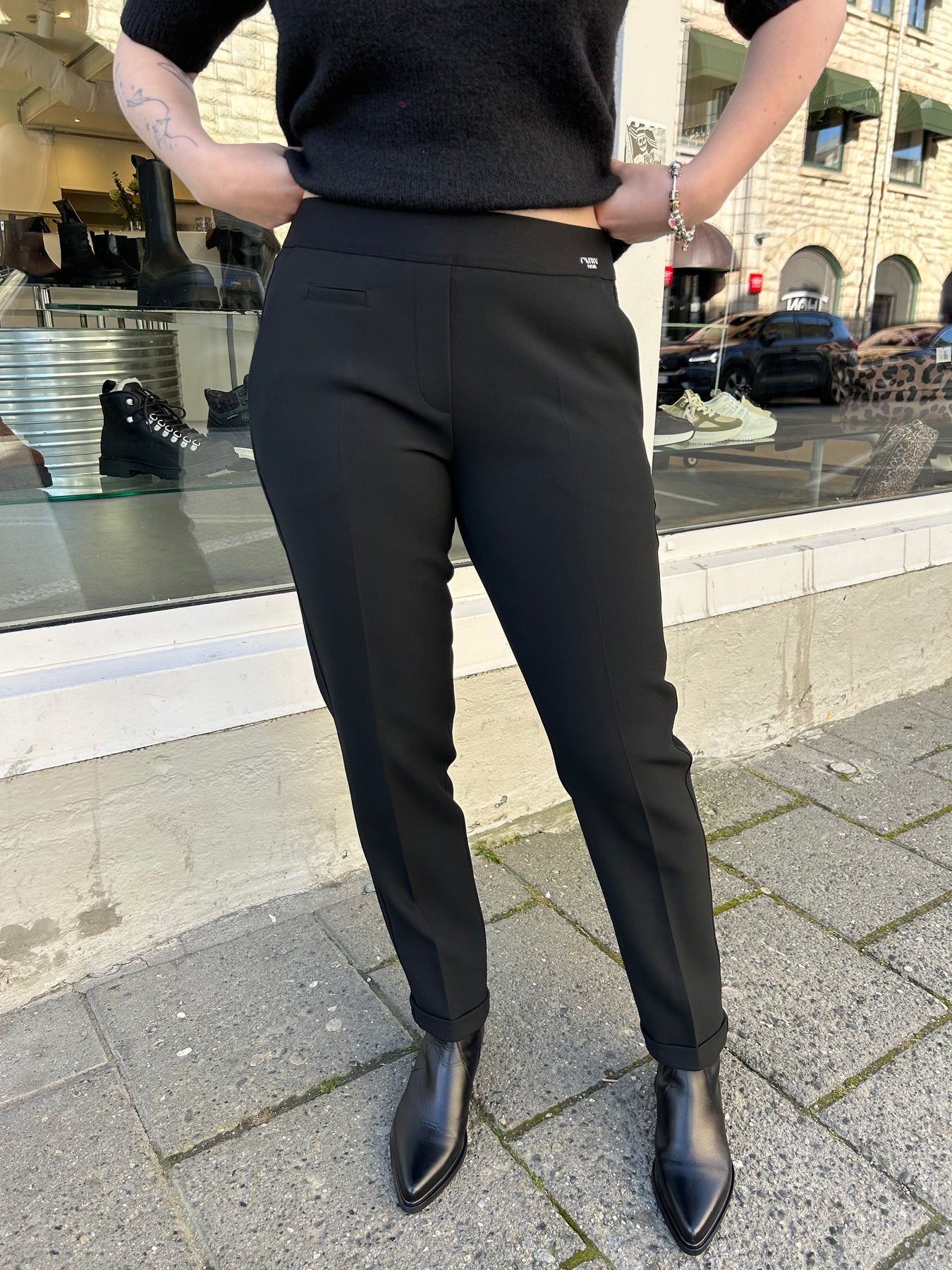 Med strikk i livet og sidelommer, i tillegg til en lommedetalje på høyre side. Denne modellen er super behagelig, lett å style og et perfekt tilskudd til klesskapet. Buksen har en liten oppbrett nederst som virkelig gir det lille ekstra og du kan kle buksen både opp og ned.