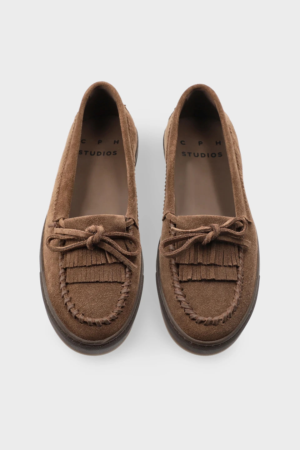 Denne loaferen må bare prøves på, den er helt utrolig god på foten. Mykt semsket skinn i nydelig brunfarge. Snøring og fryns foran, som gjør den til det lille ekstra. Myk, behagelig og lett gummisåle. Perfekt til både bukser og kjole.