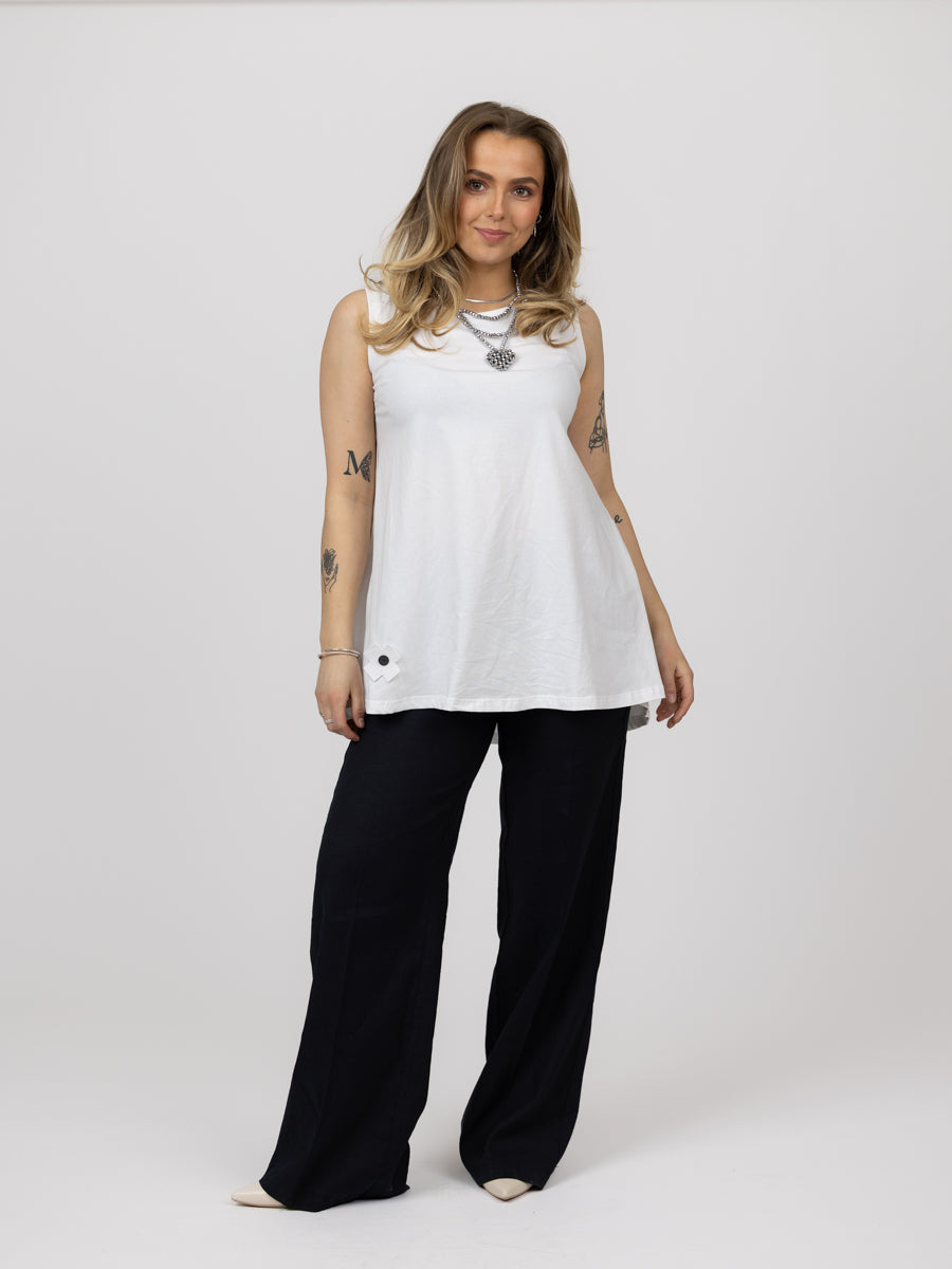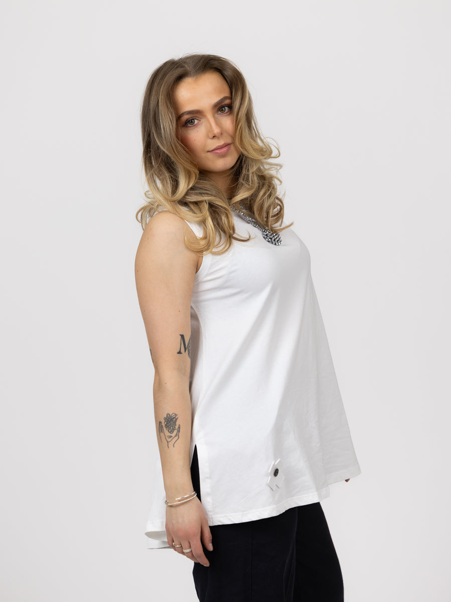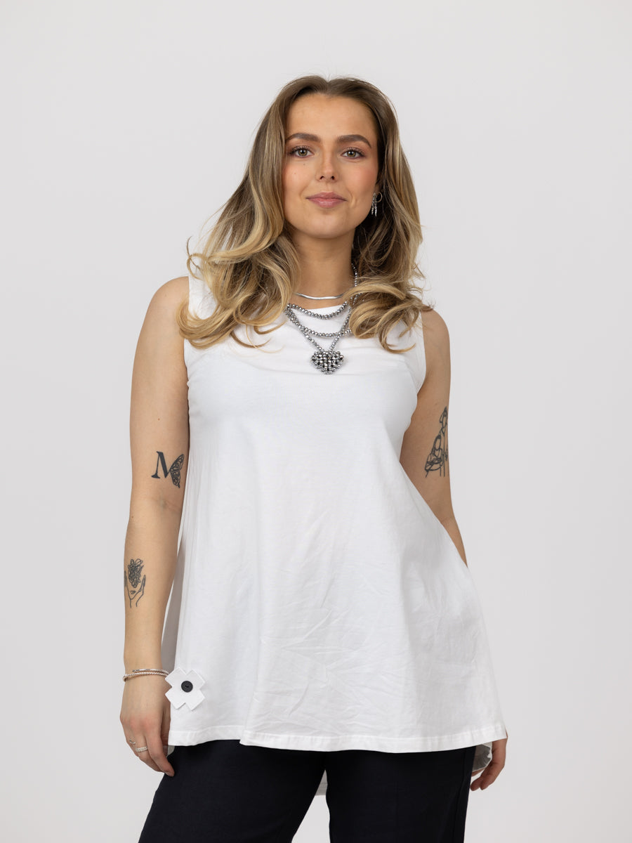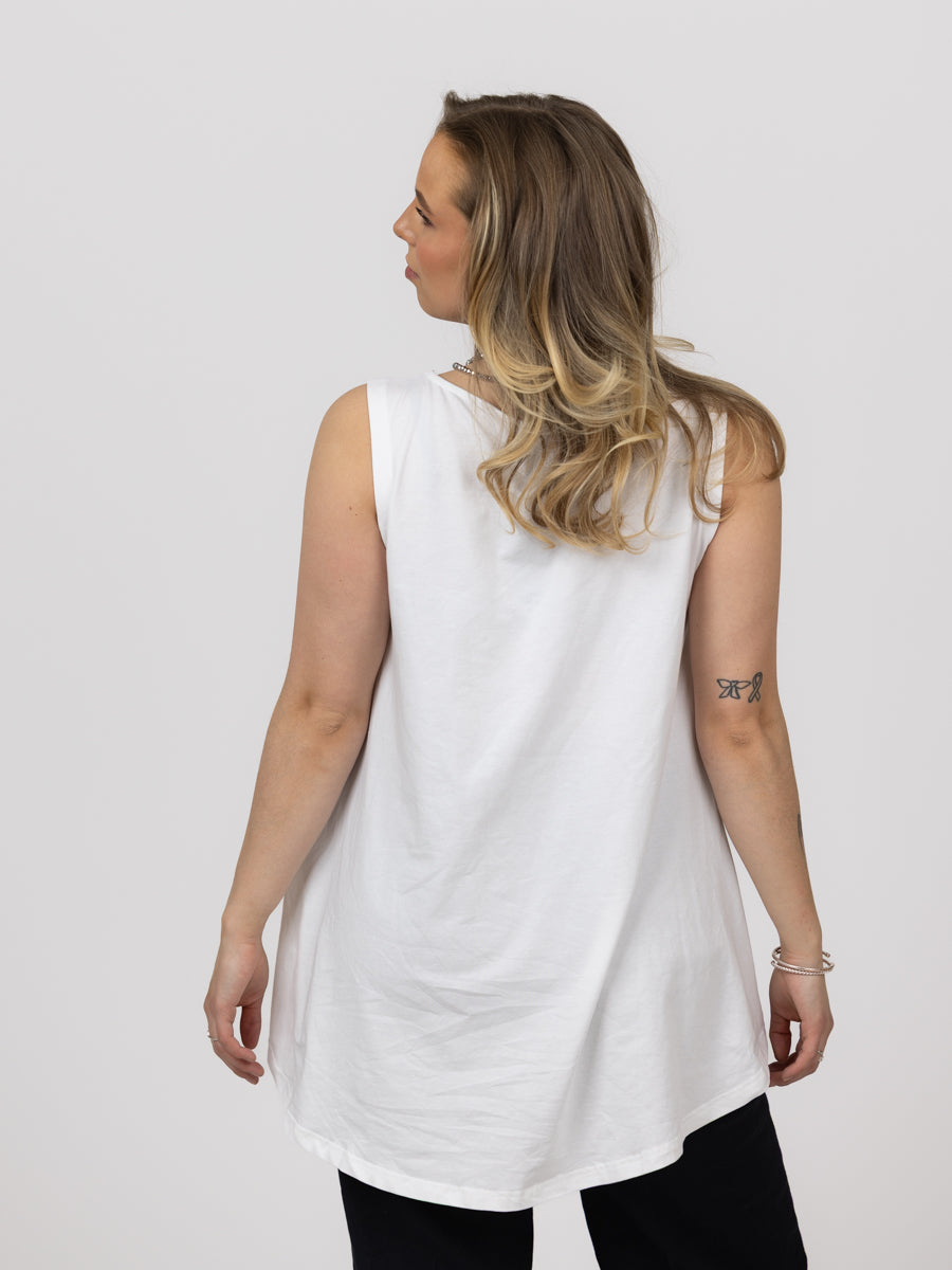 Fantastisk basis topp. Hvit uten arm. Utrolig myk, stretchy behagelig. Litt lang med en nydelig A-form.