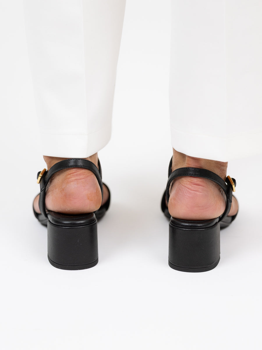 Unisa Kiala sort skinnsandal med ankelrem og liten hel