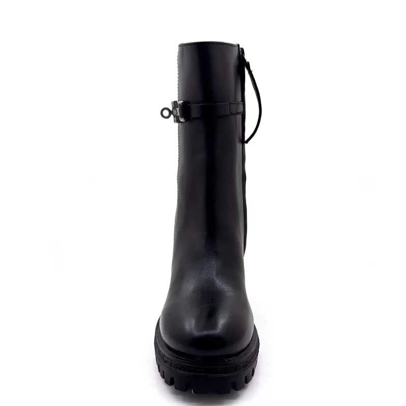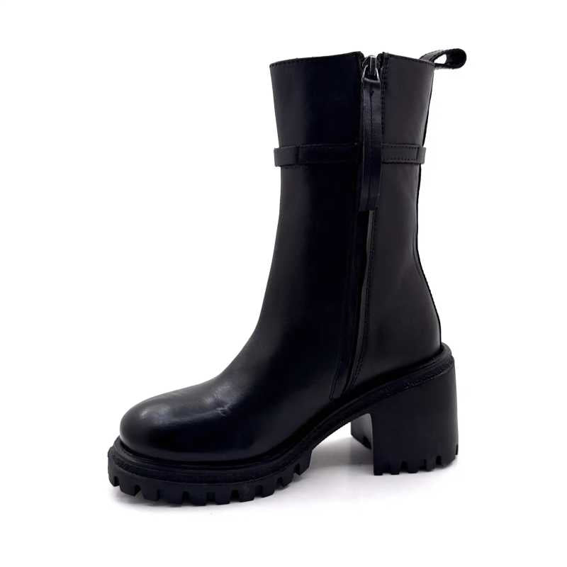 Superflott sort skolett i mykt glatt skinn, med glidelås i siden og spenne.