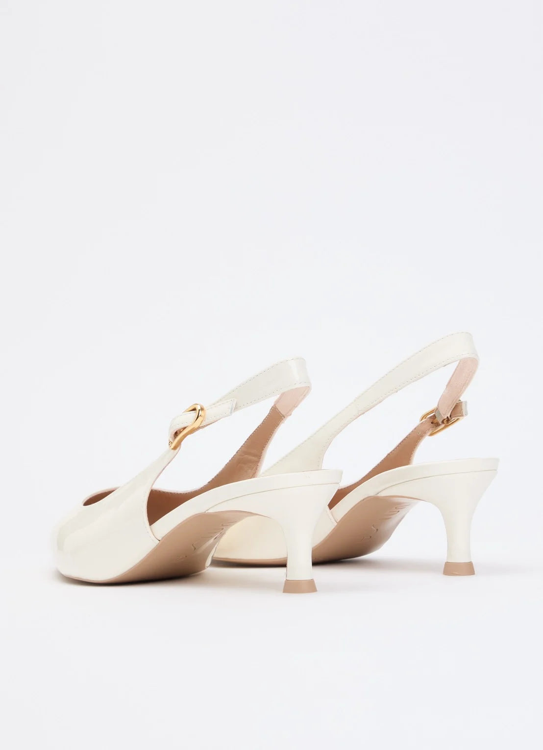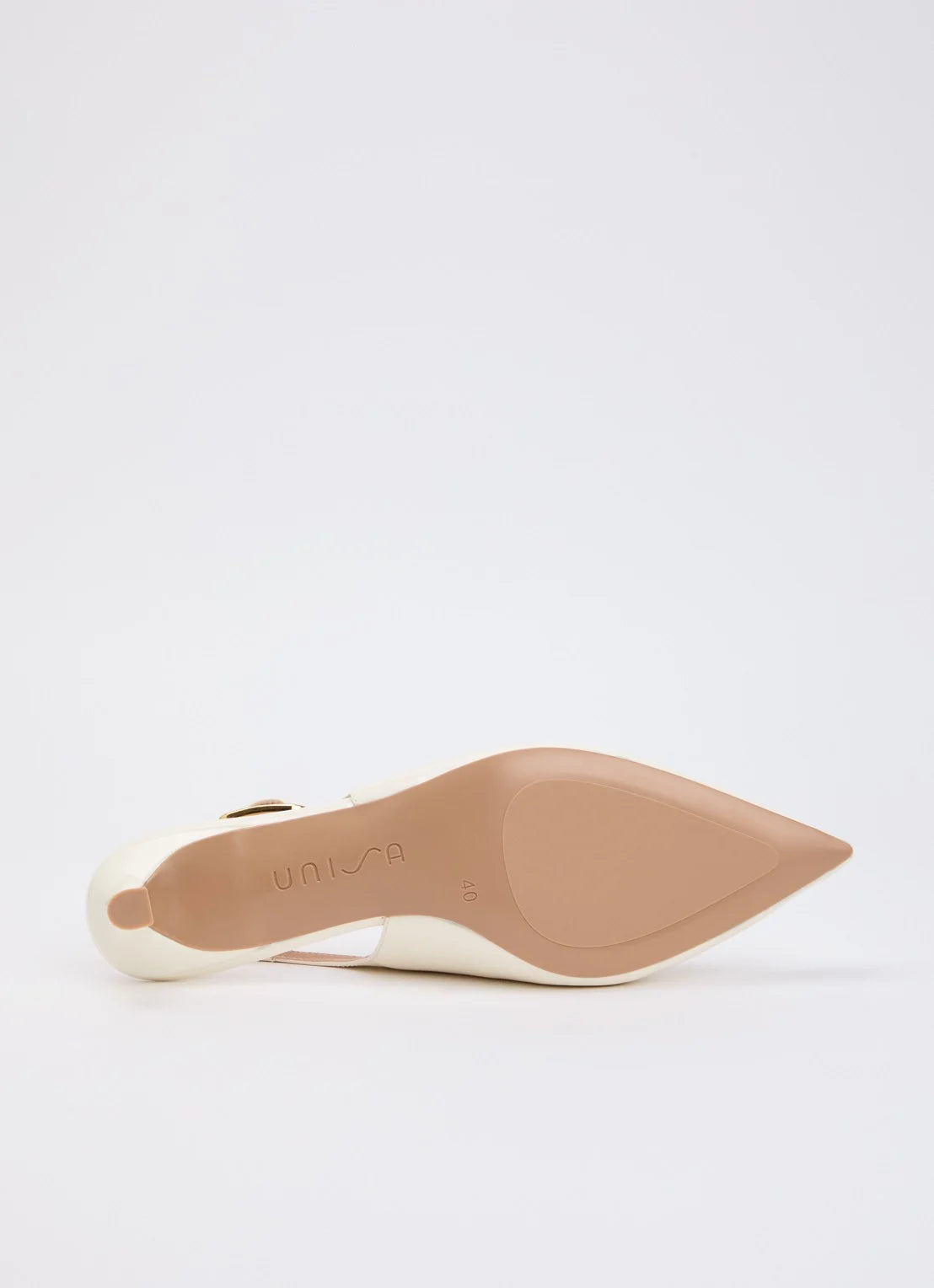 Unisa Ibon spiss pumps i off-white skinnlakk med slingback og liten hel