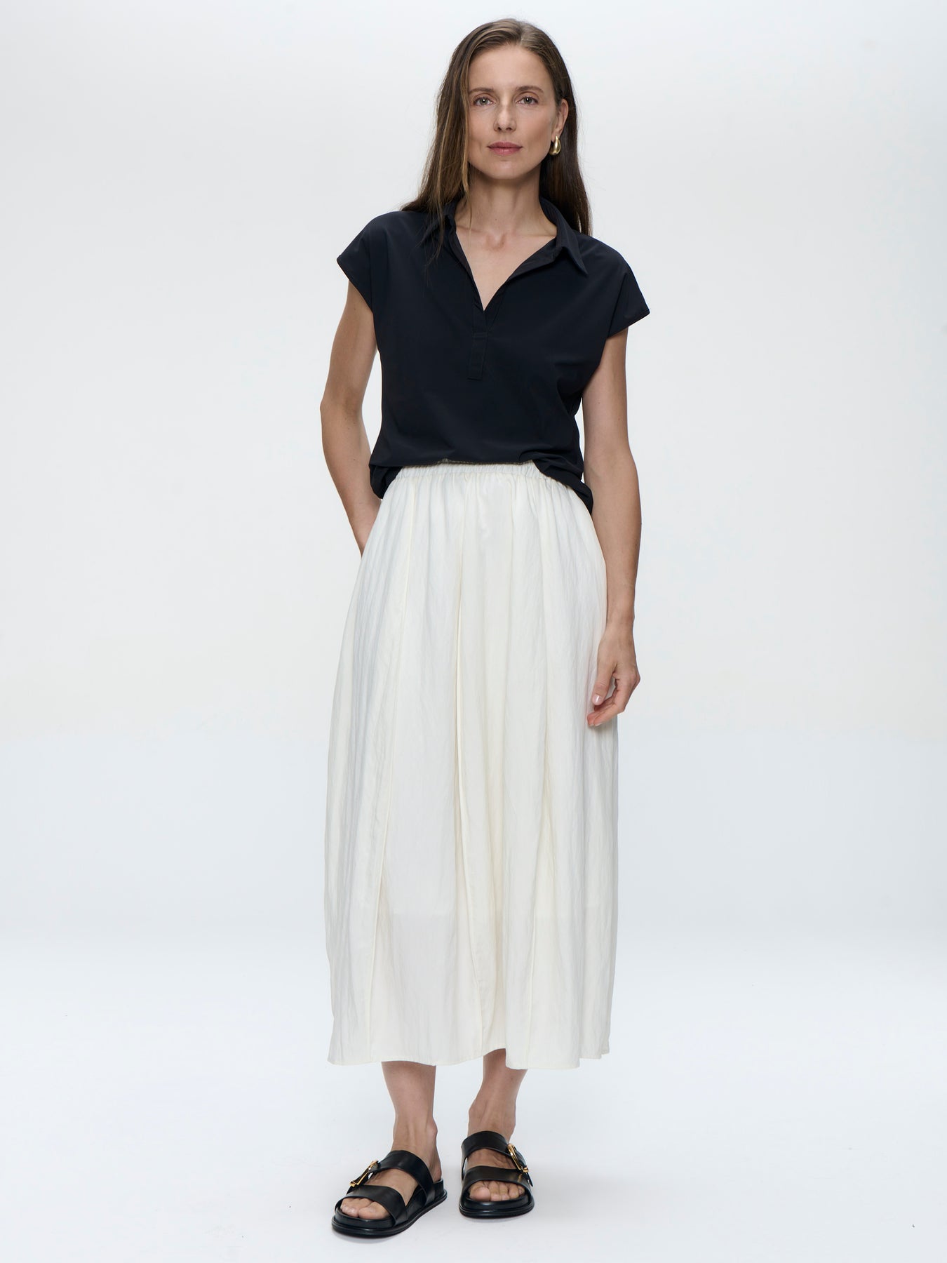 Jane Lushka Kitty sort topp med liten krage og V utrigning