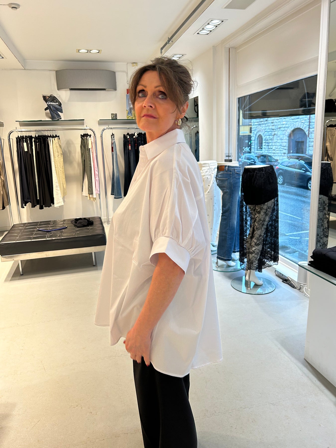 Angoor er et skjønt sommer-merke med fokus på lin og naturlige kvaliteter. Ellen er en vid, lang skjorte med kort arm. Nydelig detaljer som rynker på ermene som gjør skjorten perfekt for mange anledninger. Lett og ledig kvalitet
